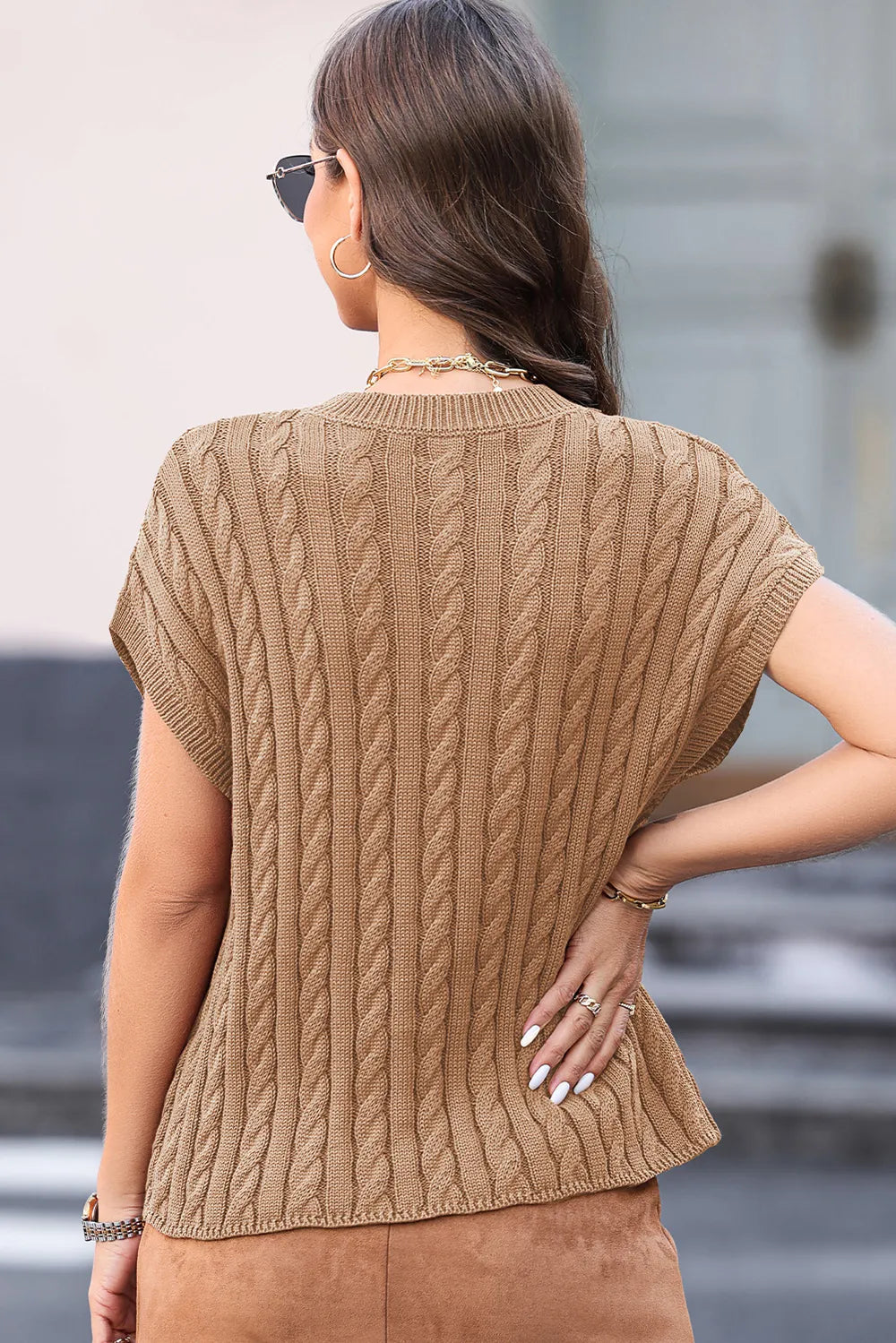 Cable-Knit Round Neck Cap Sleeve Sweater