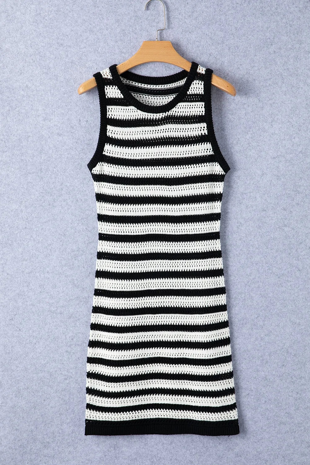 Openwork Striped Wide Strap Knit Dress