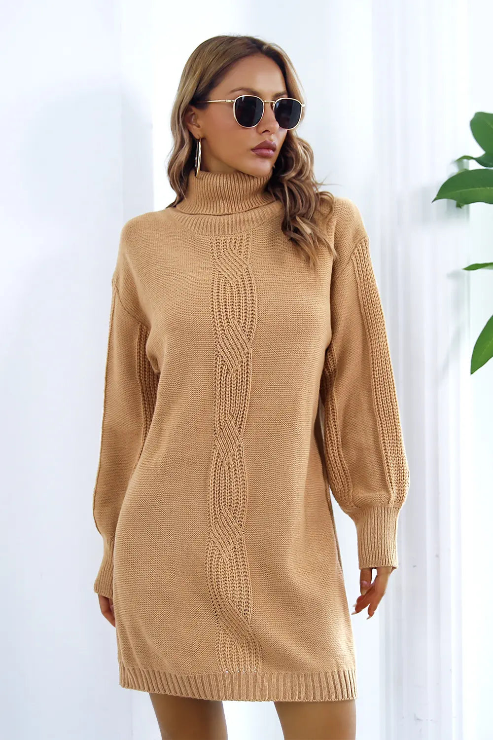 Openwork Turtleneck Long Sleeve Sweater Dress