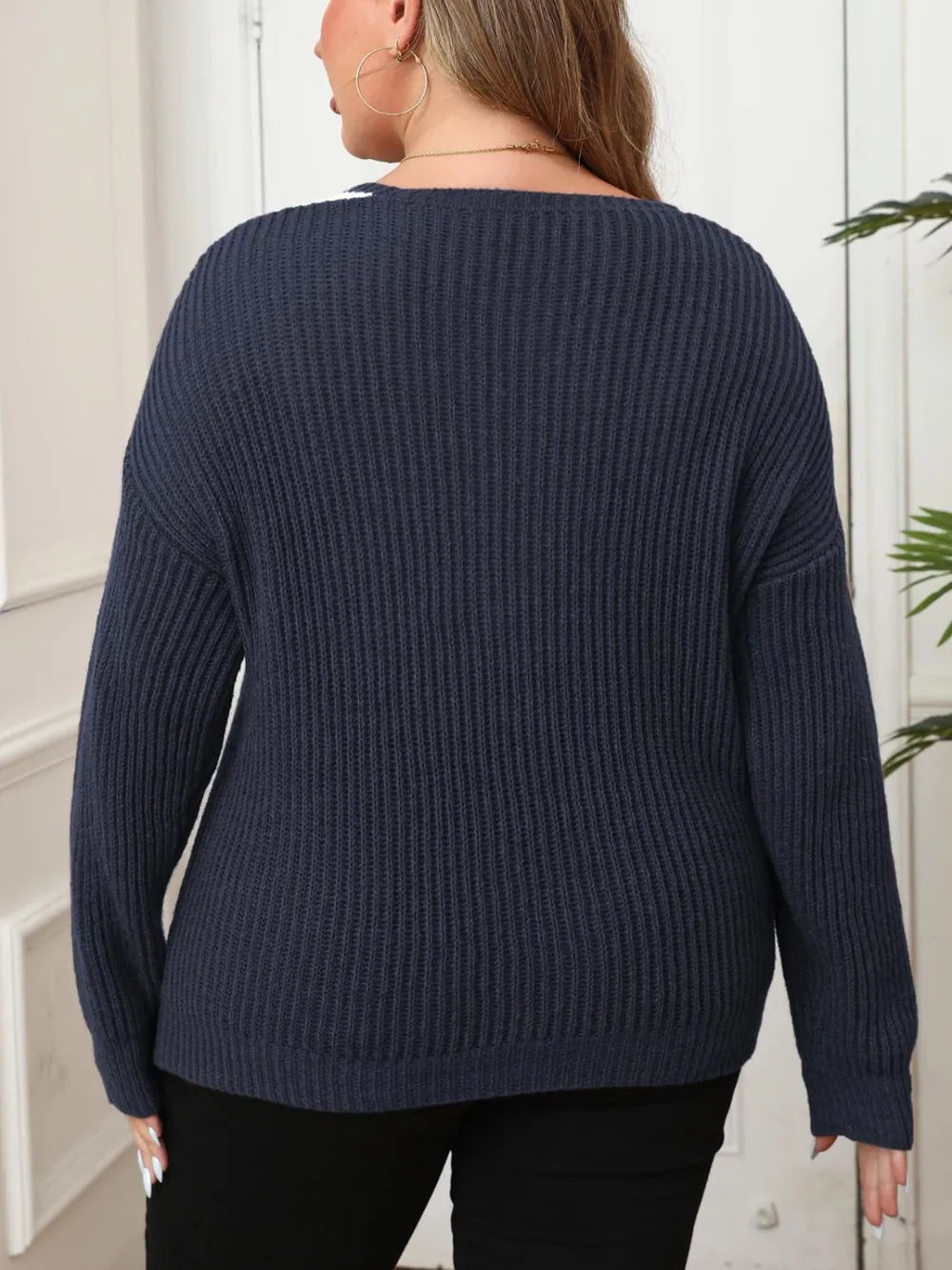 Plus Size Contrast Dropped Shoulder Long Sleeve Sweater
