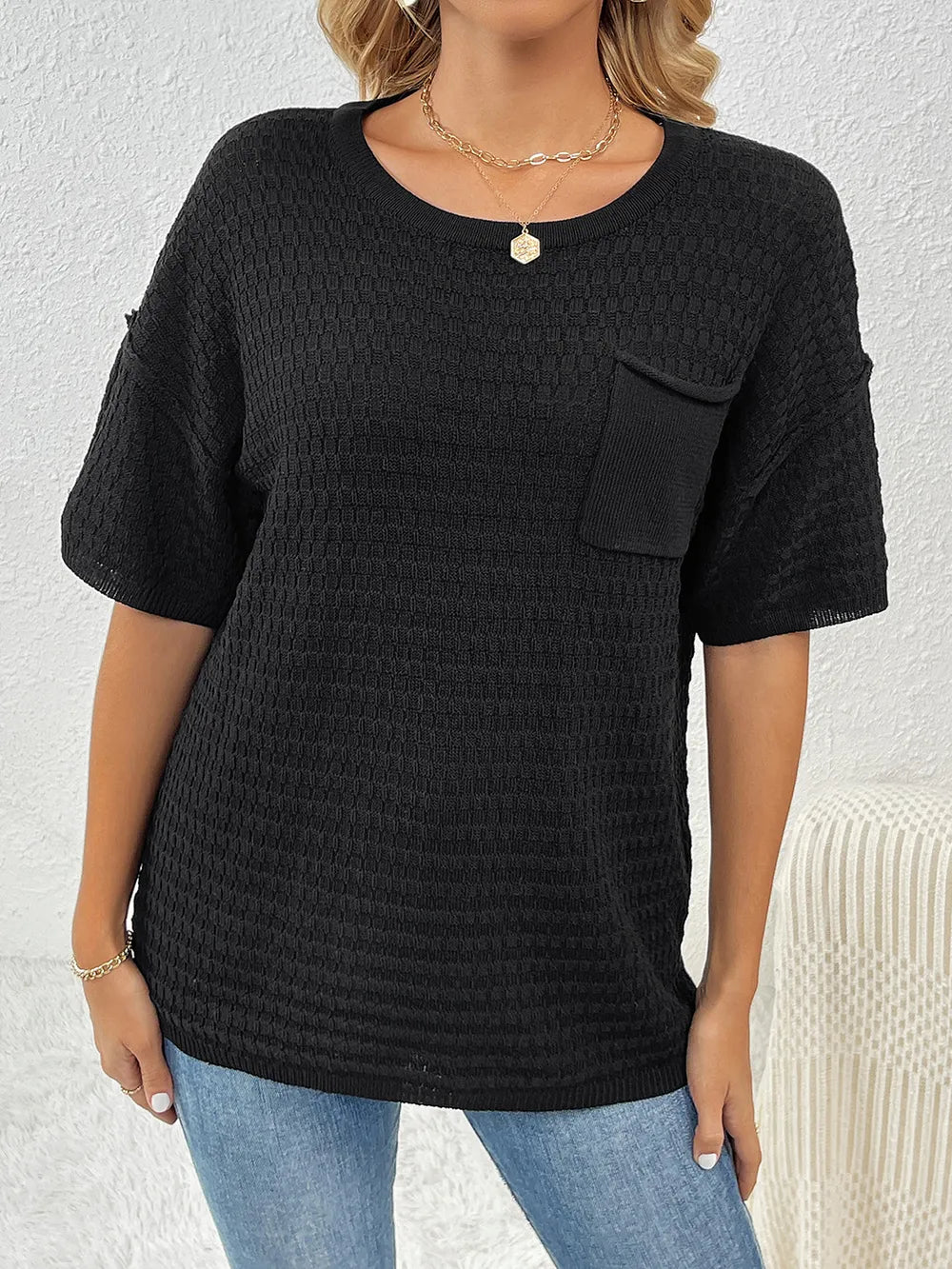 Round Neck Half Sleeve Knit Top