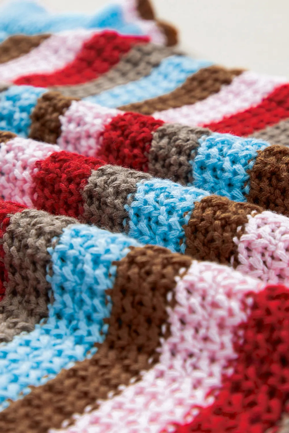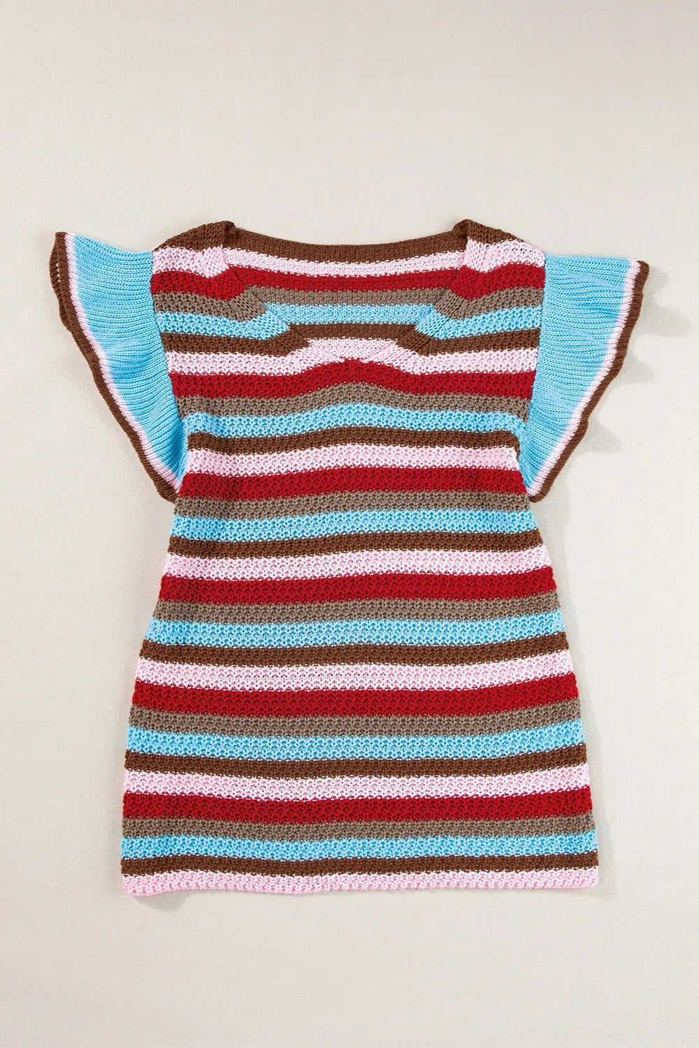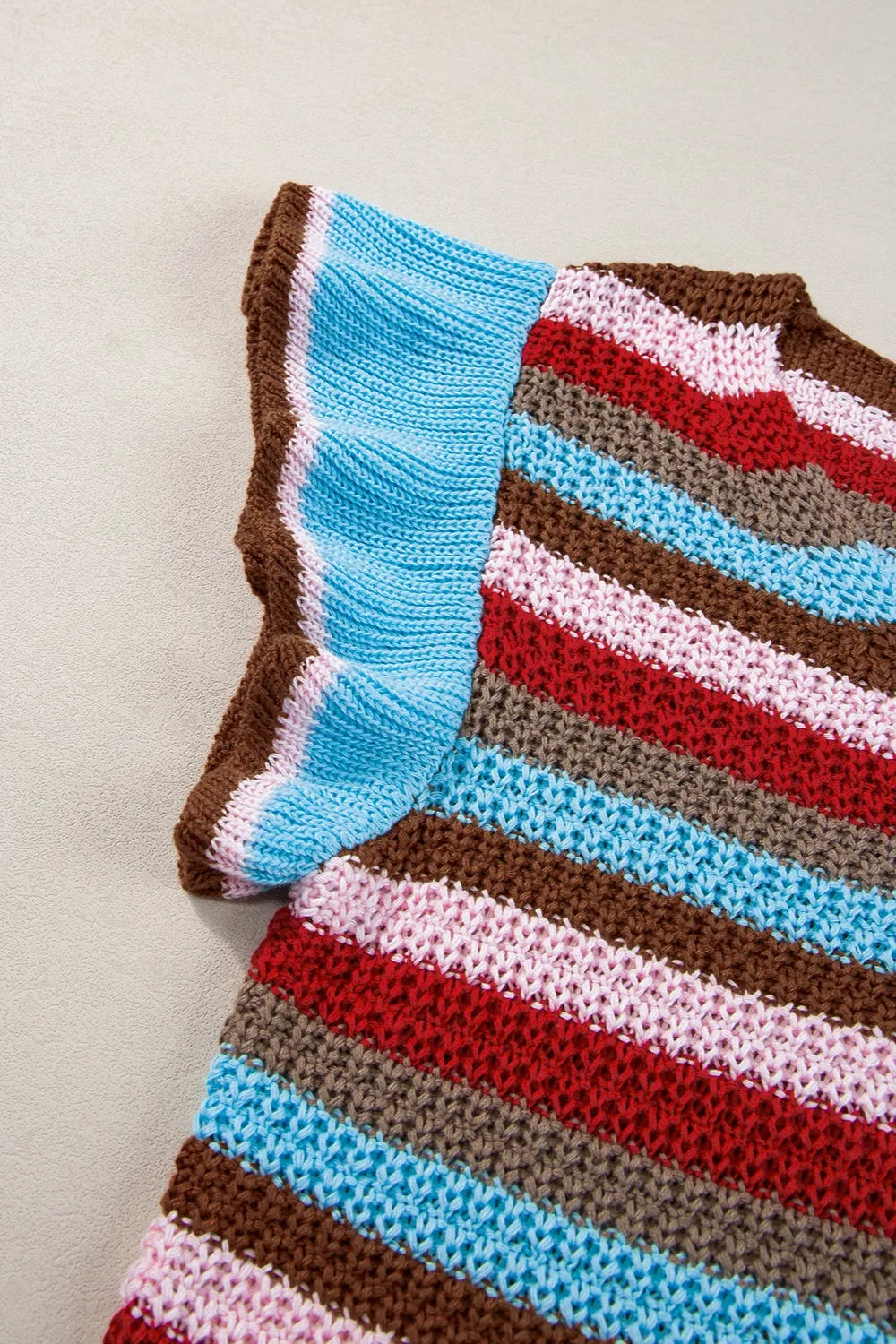 Ruffled Striped V-Neck Cap Sleeve Knit Top