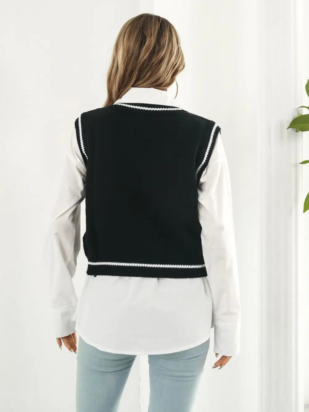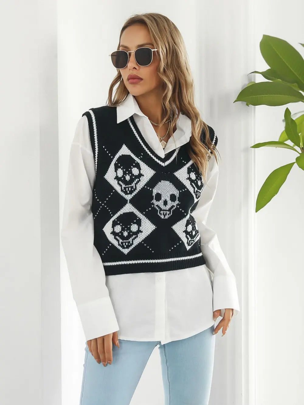 Skull Contrast V-Neck Sweater Vest