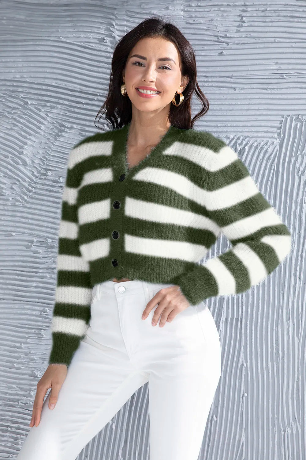 Striped Button Up Cropped Cardigan