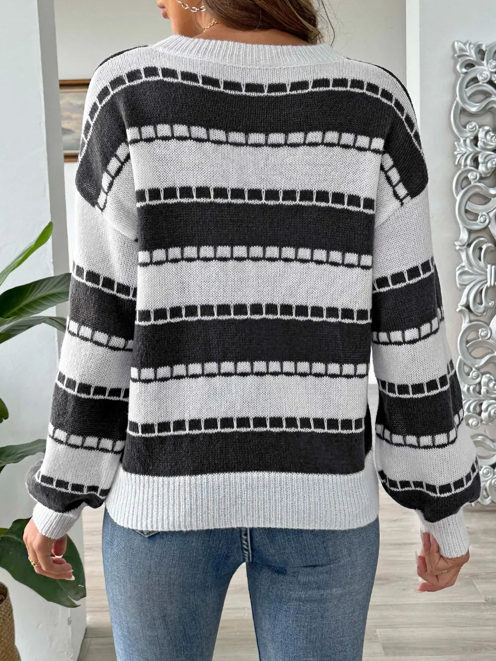 Striped Round Neck Long Sleeve Sweater