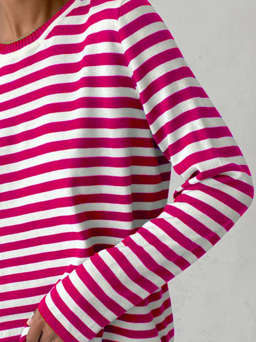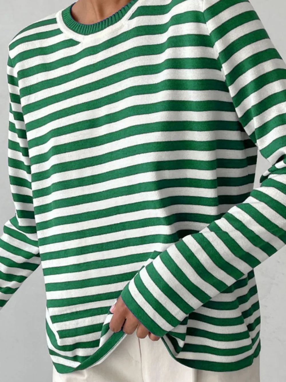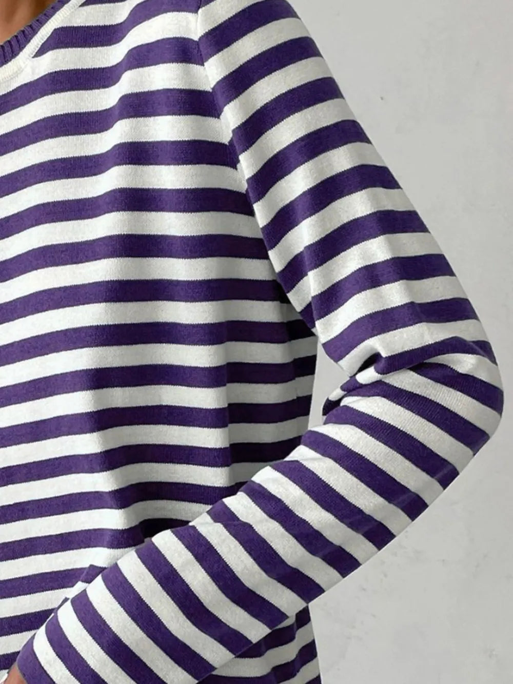 Striped Round Neck Long Sleeve Sweater