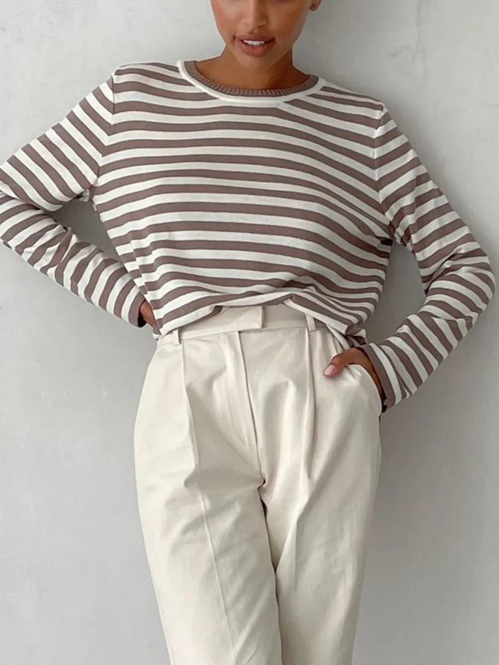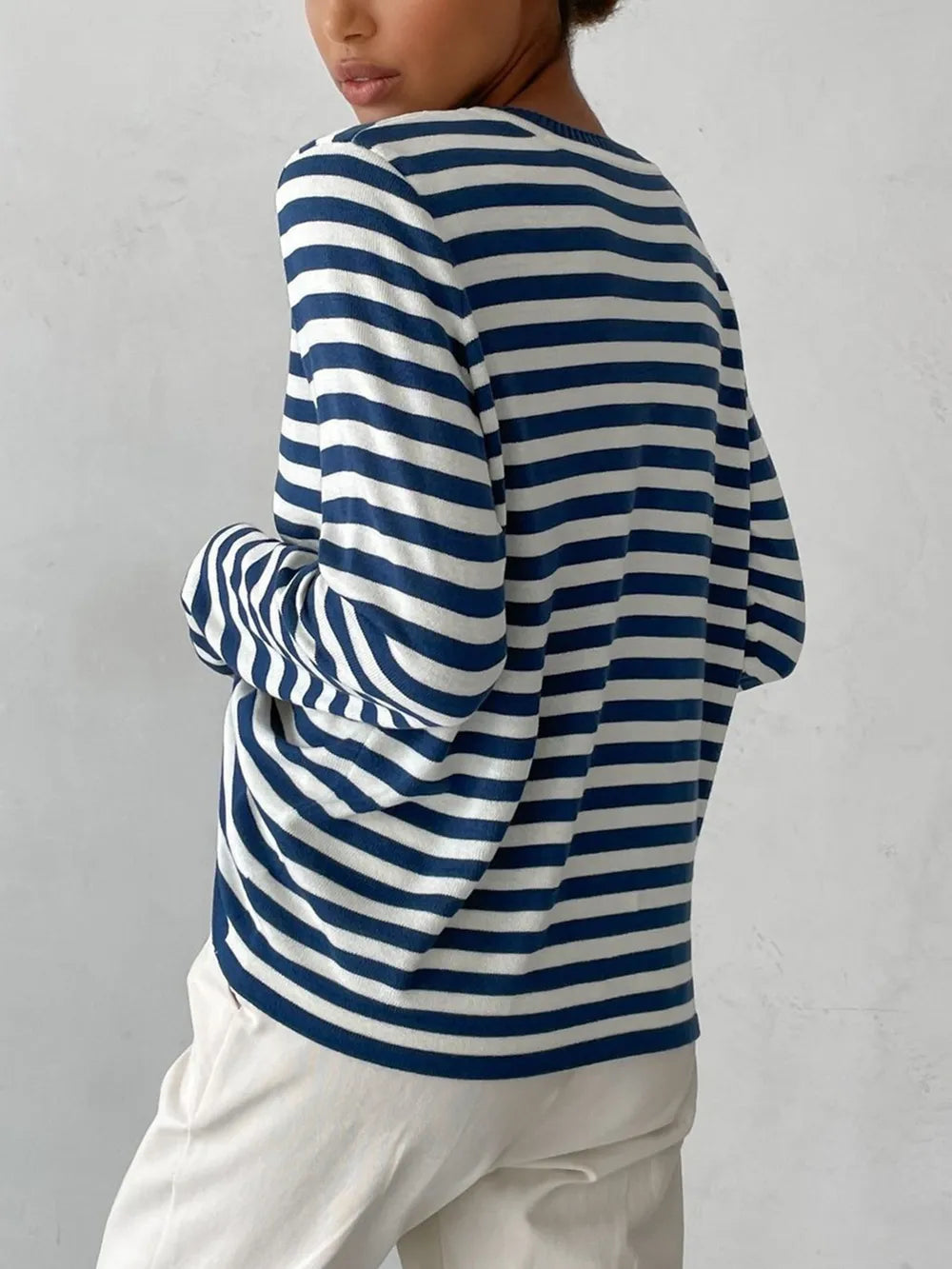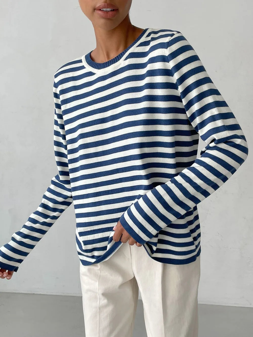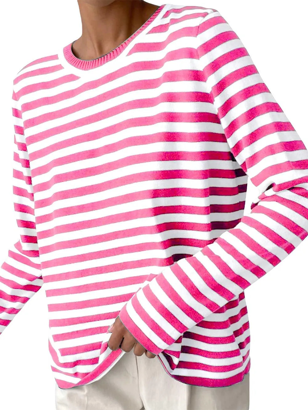 Striped Round Neck Long Sleeve Sweater